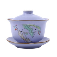 Blaues Wellenmuster Umweltfreundliches Gongfu-Teeservice mit Deckel und Schale Sancai Vergoldeter Rand Keramik-Gaiwan Modernes Design